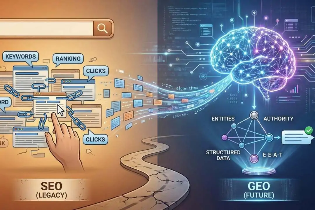 Durante los últimos 15 años, el pacto fue sencillo: Google organizaba la información y tú le dabas contenido a cambio de tráfico. Ese pacto se ha roto. Ahora, los motores de búsqueda se han convertido en Motores de Respuesta entre GEO vs SEO.